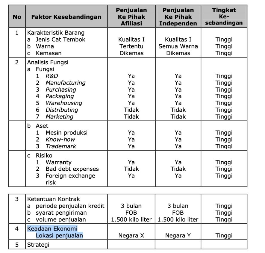 - Menentukan kesebandingan antara transaksi independen dengan transaksi yang dipengaruhi hubungan istimewa,